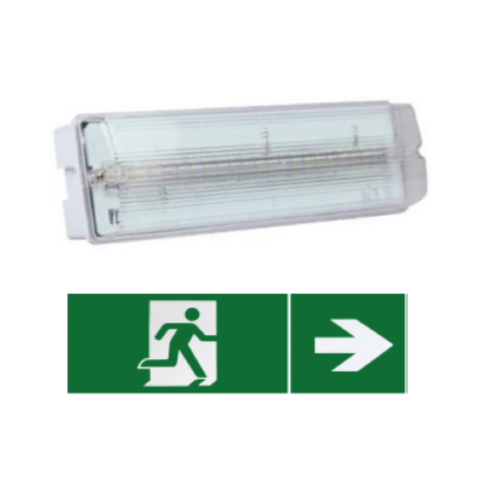 The BAR Emergency SMD Exit Light offers efficient and clear emergency illumination with a 3W LED producing 150 lumens at a cool 6000K color temperature. Equipped with a 3.6V 1500mAh Ni-Cd battery, it provides up to 3 hours of emergency lighting. Designed for non-maintained operation and built to IP65 standards, this exit light is reliable for various environments. Comes with a clear exit pictogram and a 1-year warranty.